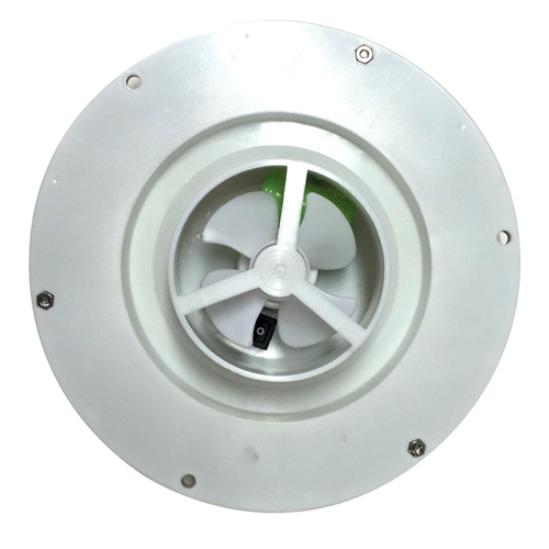 Solar powered marine vent with rechargable battery for 24 hour operation.